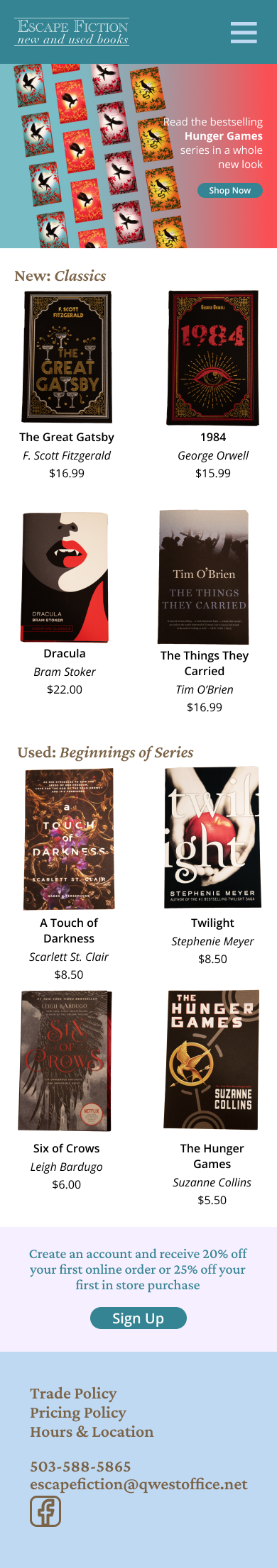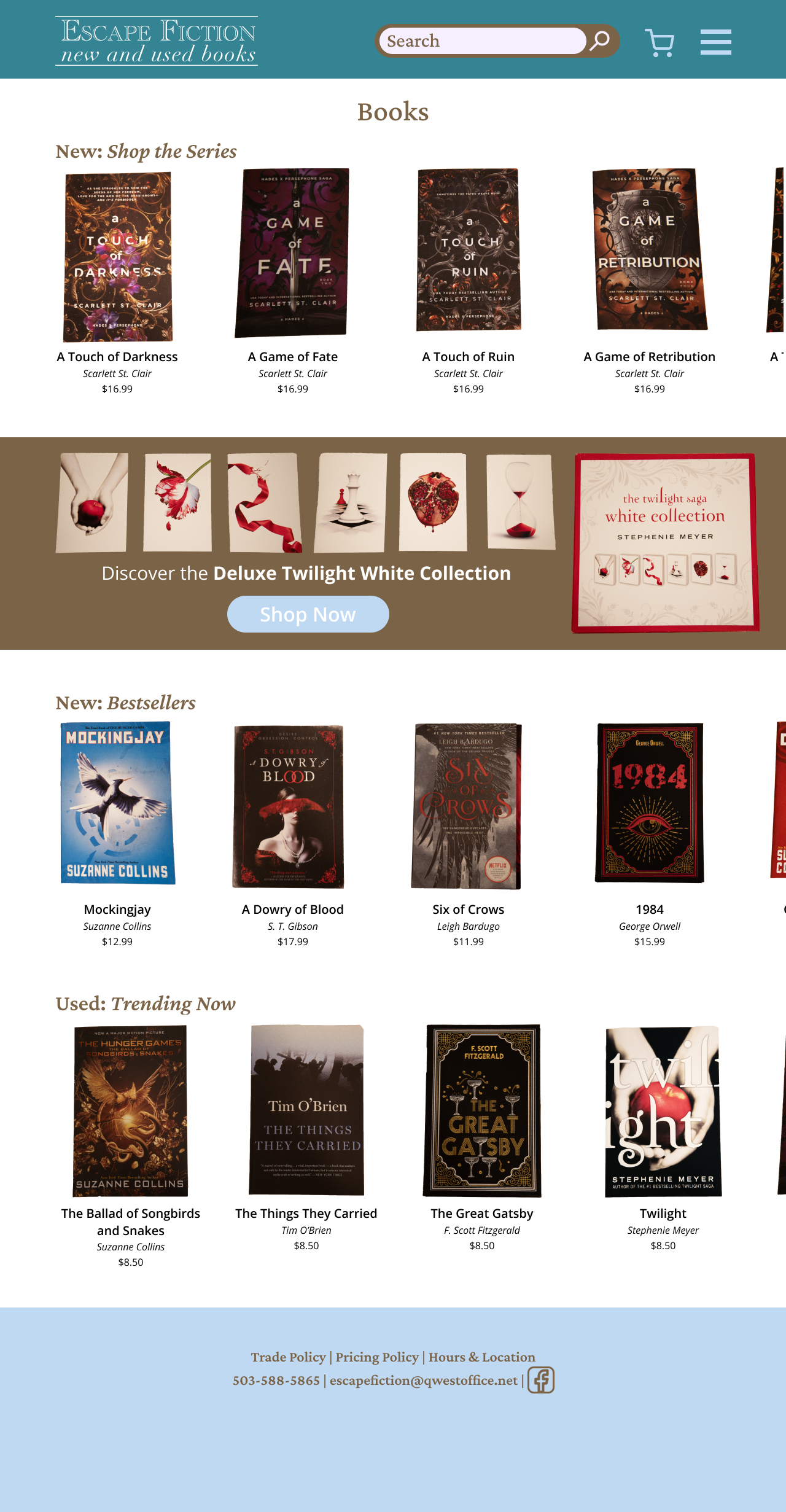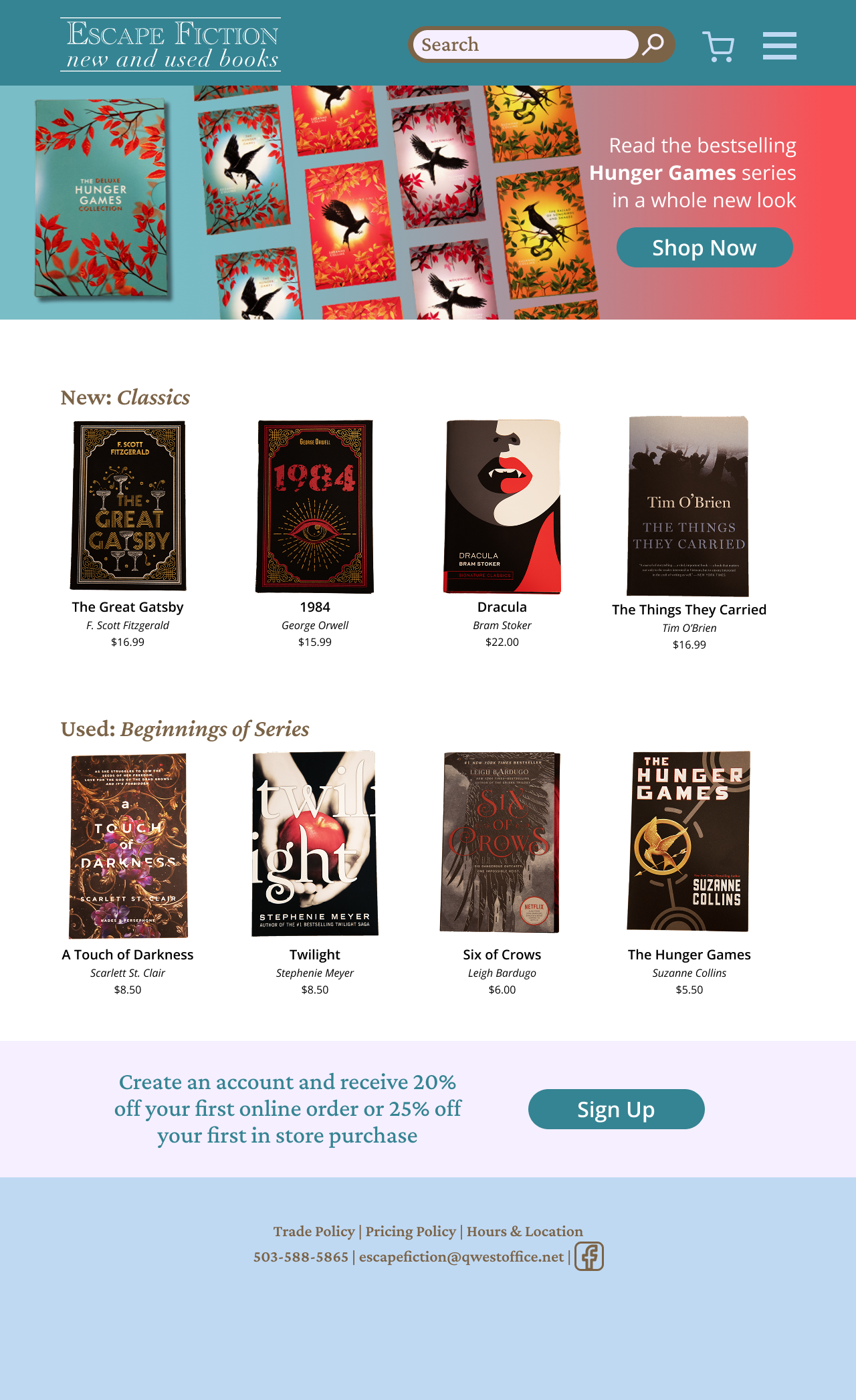 Solution: I designed a website for Escape Fiction, creating multiple engaging aspects for consumers to interact with. To enhance the site’s visual appearance, I took into account various uses of color and typography throughout the site.